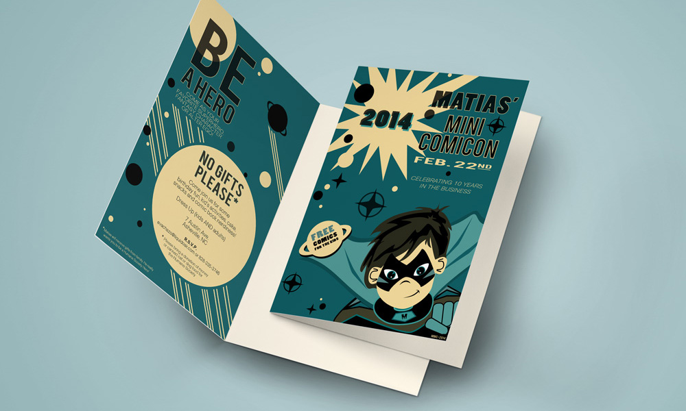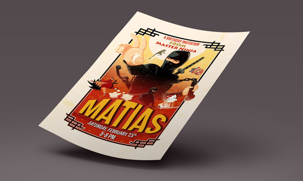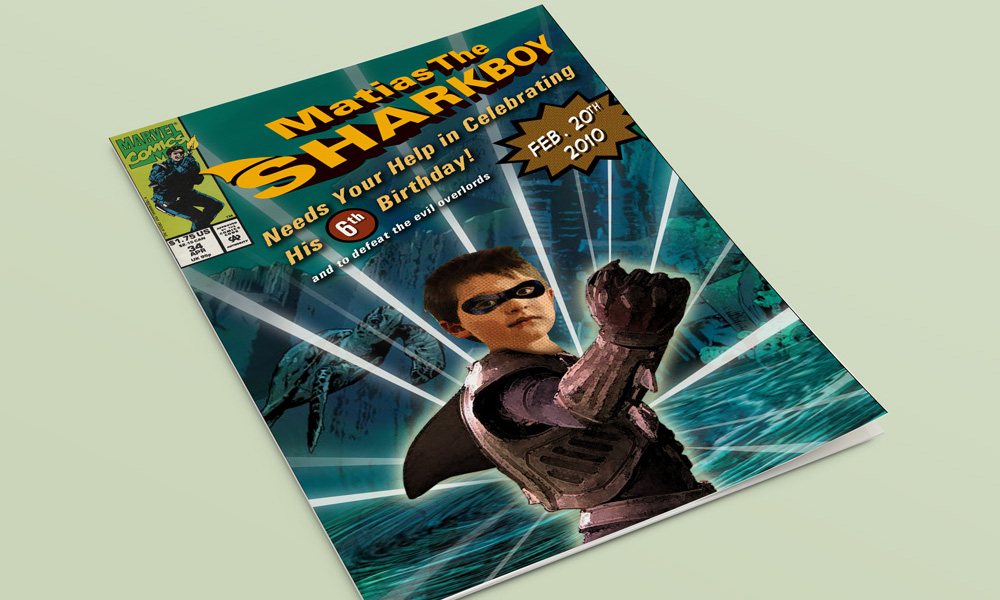 Ok, invitations for your child's birthday party is not the typical thing you'll find in any designer's portfolio. But to me, design is design is design - even if the client is your young son. Every year I designed a different and unique birthday invitation and sent it out to all of my son's friends and family. Whatever Matias was into that year (wheather it was robots, ninjas or comicbooks) was the theme of the card. I did the first one as a lark just to have some fun, but it got such a huge response, that I had no choice but to continue the tradtition year after year.