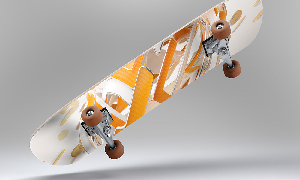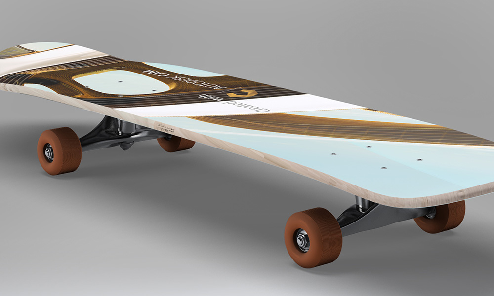 To promote the concept of "cool" Autodesk programs to a new, younger audience, Autodesk was seeking a striking design to be used on skateboards that would be given away at various events. These were then given away to promote several Autodesk products, including Autodesk CAM.