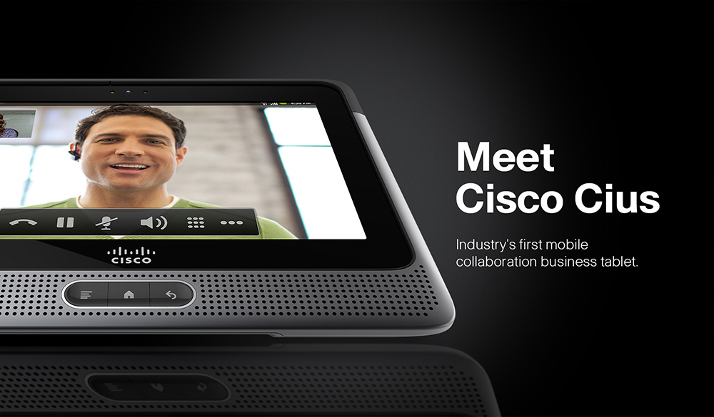 Cisco's Cius is an Android-based tablet has been specifically design for collaborative business applications and technologies. It featured realtime video conferencing, an phone app, IM, chat, email and Cisco's own customizable app store. These large web ads went out to several technology websites and web magazines.