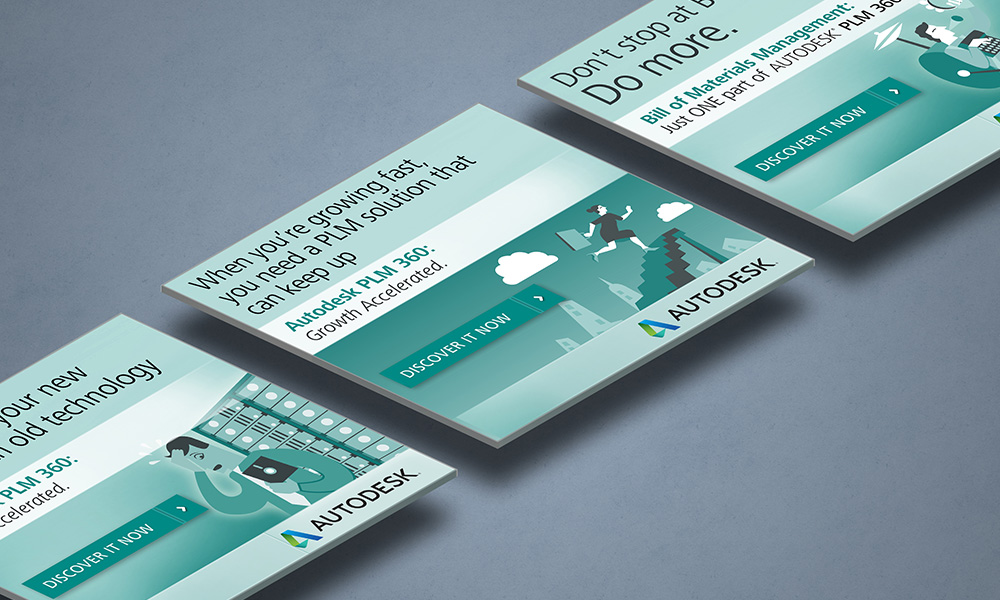A series of web banners to help promote Autodesk's suite of Project Lifecycle Management tools (known as PLM in the industry) PLM 360